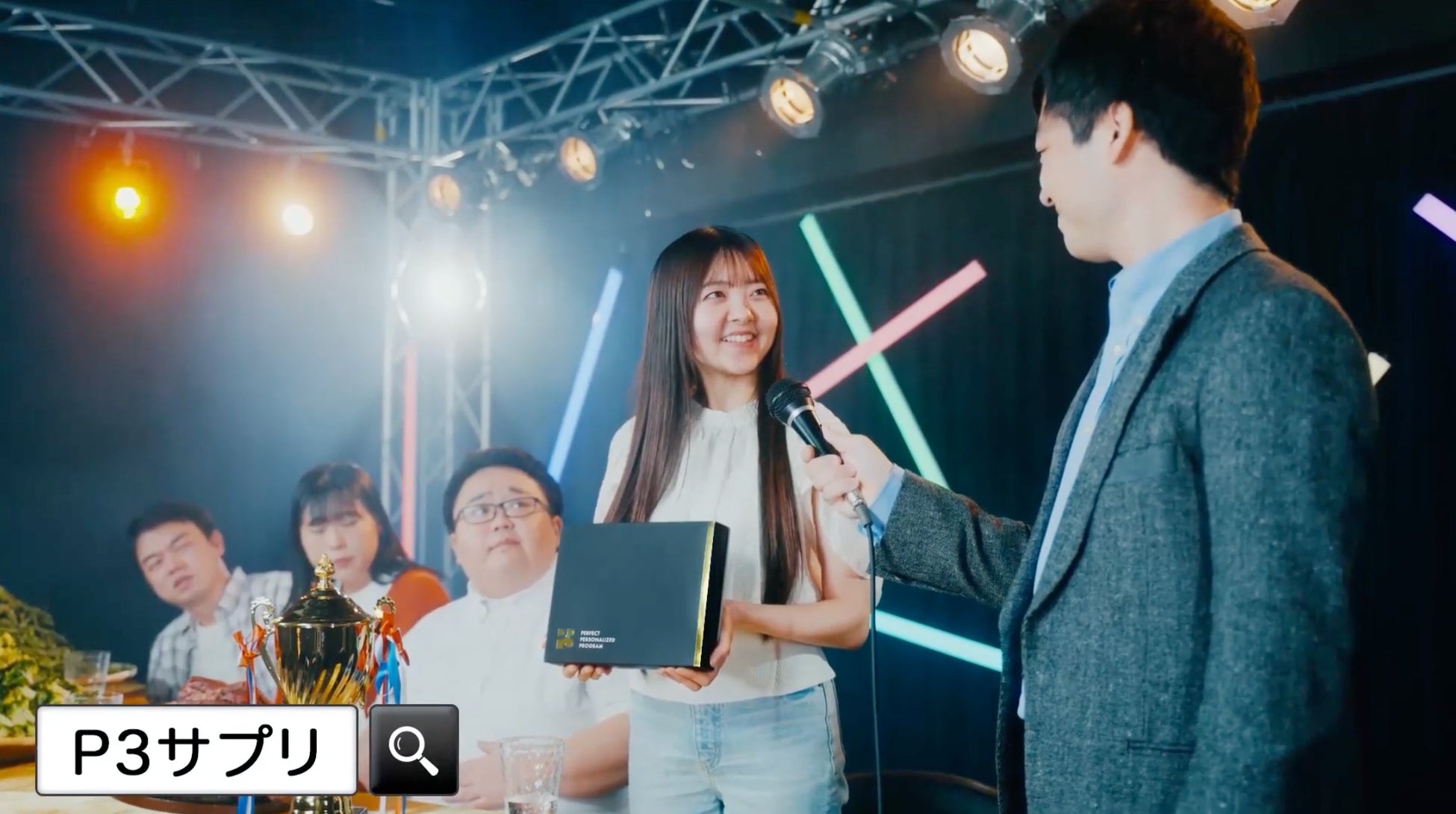 P3サプリは、忙しい日々でも手軽に続けられる理想のサプリメント。最後は優勝者の笑顔と共に、「毎日のエイジングケアに、P3サプリ」のメッセージで商品価値を訴求します。