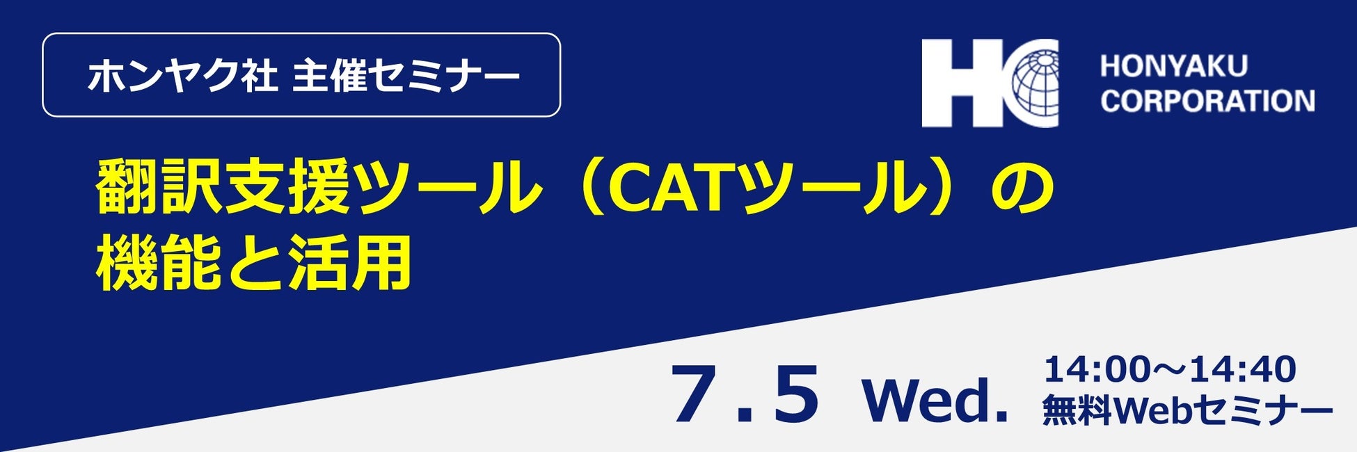 ホンヤク社主催Webセミナー 翻訳支援ツール(CATツール)の機能と活用 2023年7月5日(水)