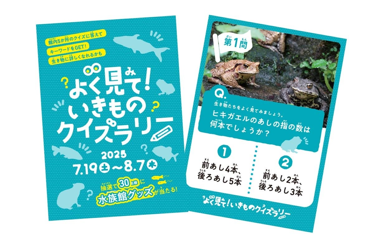 スマートフォンなどから答えを応募すると、正解者の中から抽選で30名様に水族館グッズをプレゼントします。