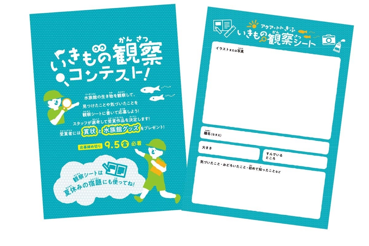 水族館で生き物を観察してみよう!気づいたことや見つけたことを『いきもの観察シート』に記入して応募します。