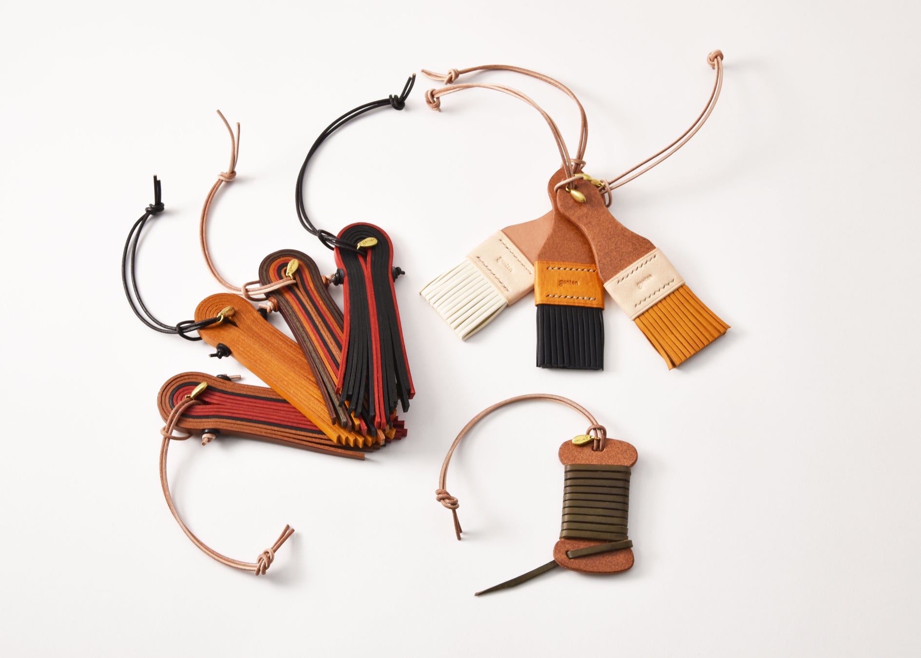 糸巻、ブラシ、巾着の紐をモチーフの限定チャーム。