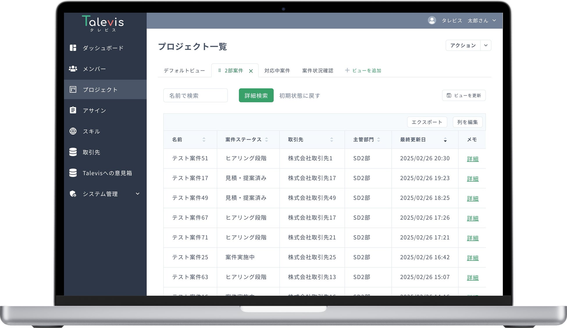 「Talevis」は、受託企業(SI/SES、コンサルティングファーム等)特有の業務に対応した、スキル・案件・アサインを一元管理できるSaaSプラットフォームです。