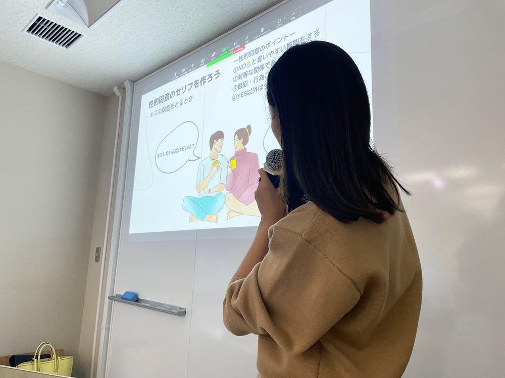 ゼミを受講している大学2年生~4年生15人に向け、日本の性教育の現状や課題の紹介と性的同意に関するディスカッションを行いました