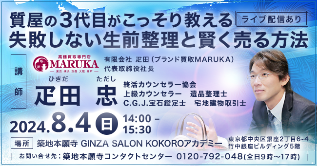 【LIVE配信あり】終活セミナー「質屋の3代目がこっそり教える、失敗しない生前整理と賢く売る方法!!」