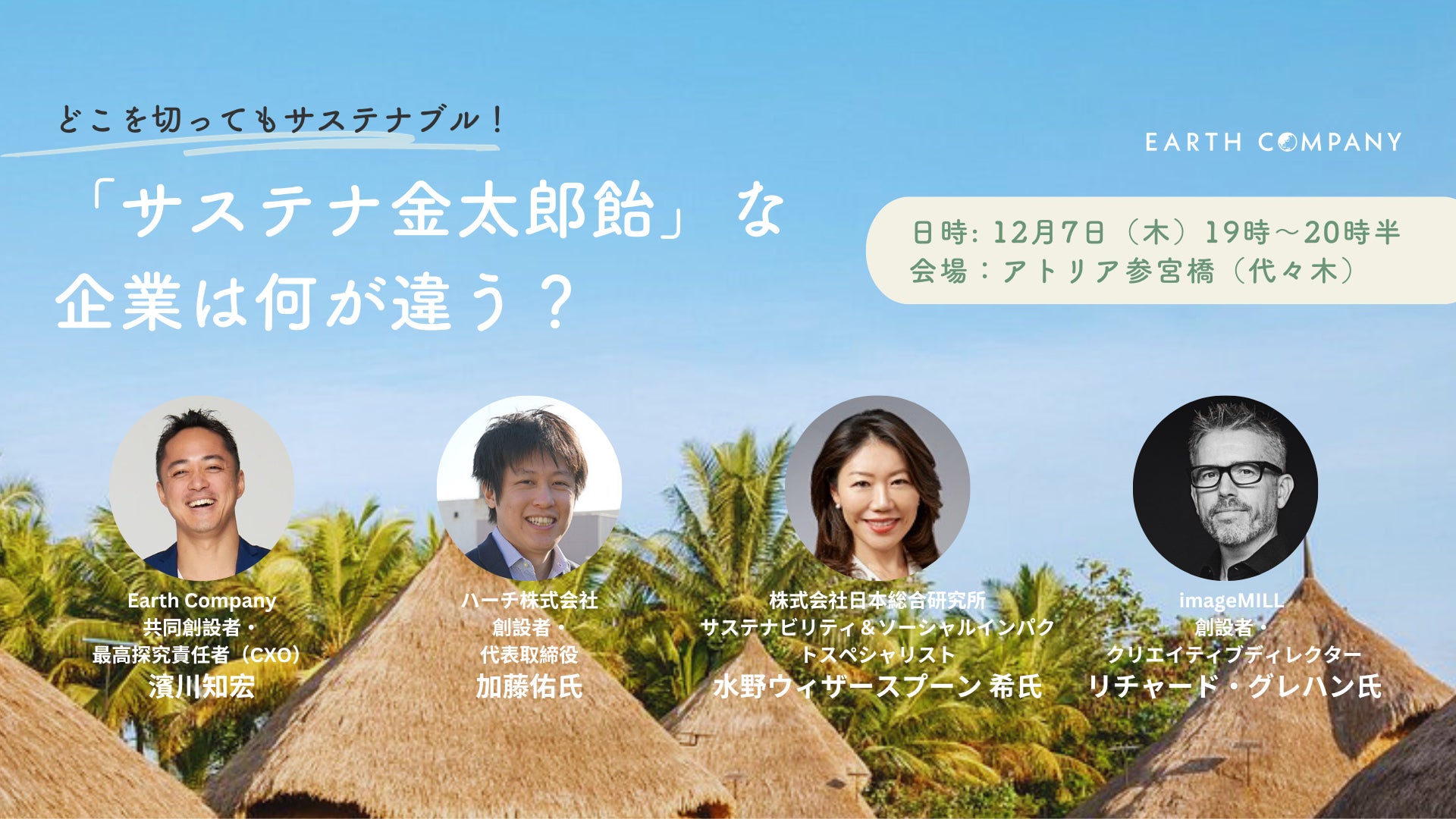 12月7日(木)東京・代々木にて、本調査結果の詳細を初公開し、議論・探究するイベントを開催いたします。企業活動をどこから見てもサステナブルな先進企業を「サステナ金太郎飴」と称し、企業のサステナビリティへの取り組みに詳しいゲストを迎え、「サステナ金太郎飴」の企業にはどのような特徴があるのか、どのようなことを意識しているのかなど、を紐解いていきます。