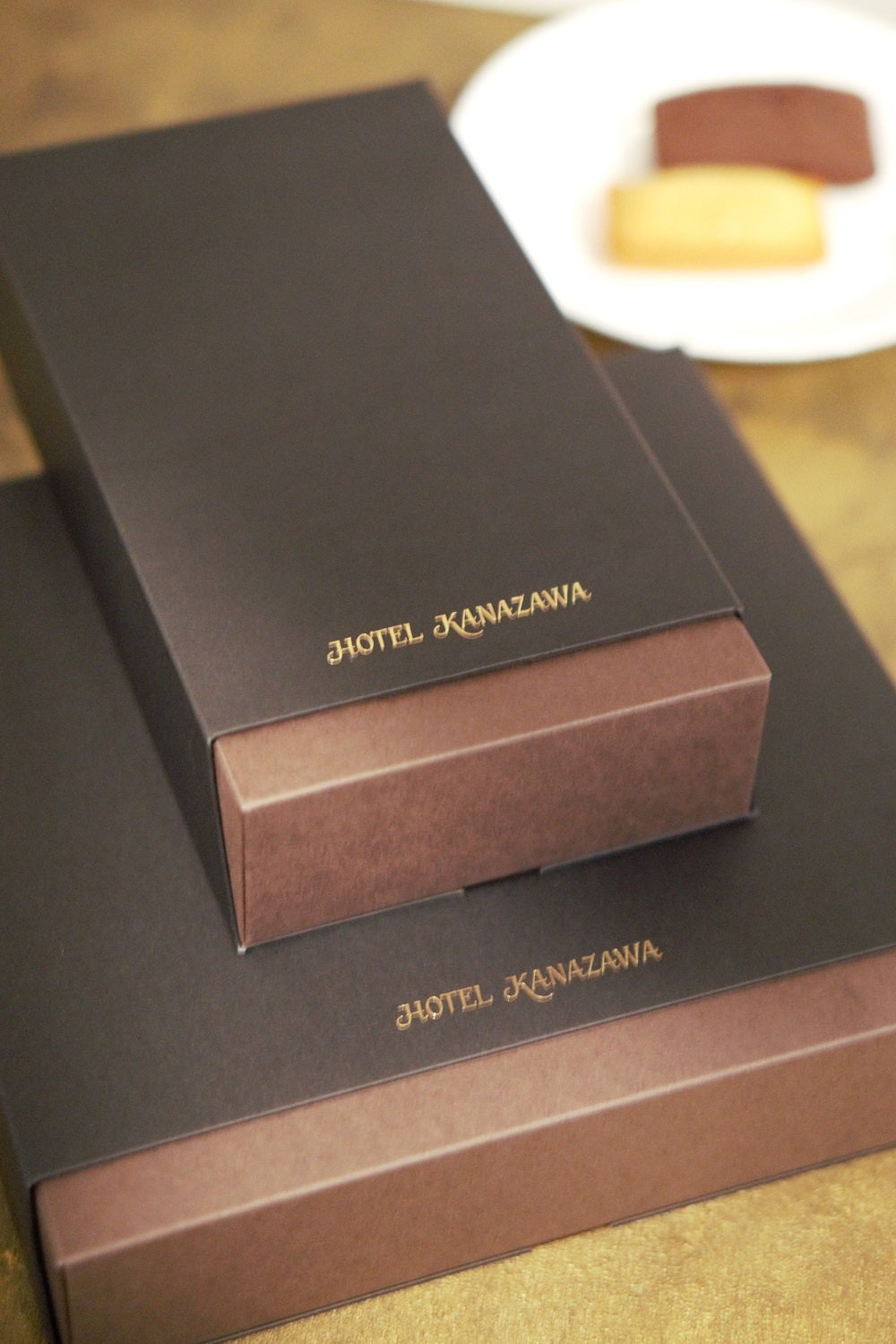 この他、オレンジのゼスト(皮をすりおろしたもの)を混ぜ込んで焼き上げたマドレーヌや、国産バターとアーモンドパウダーをふんだんに使用して、丁寧に風味豊かに焼き上げたフィナンシェ(プレーンとノワゼットの2種)を、ホテル金沢のオリジナルギフトBOXにお詰めして、お届けいたします。