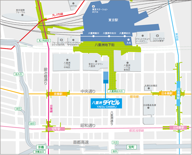 ・地下1階で八重洲地下街と直結し、利便性の高いアクセスルートを提供します。
