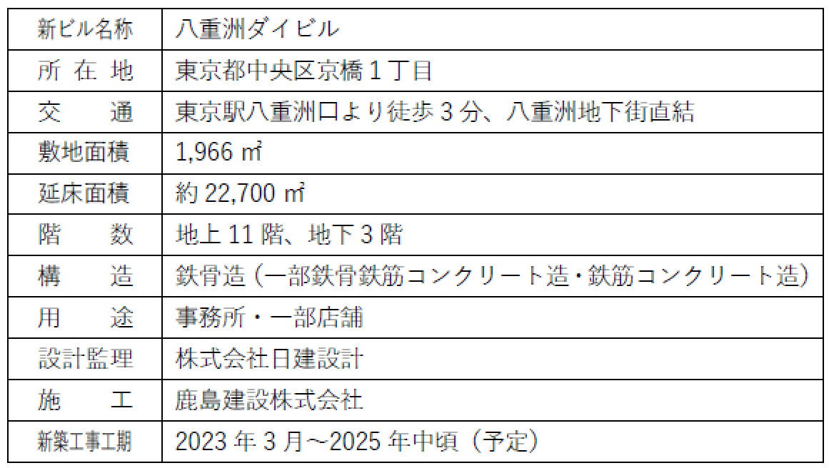 本計画は2021年12月末に閉館した旧八重洲ダイビルの跡地に新ビルを建設するものです。