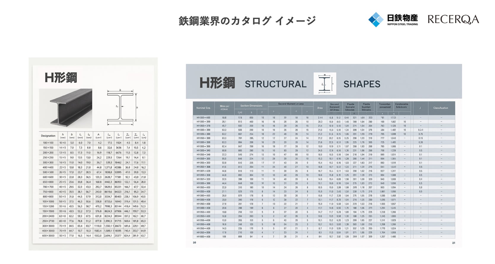 鉄鋼業界においては、国・メーカー毎に独自のフォーマットで記載された膨大なカタログが存在しています。