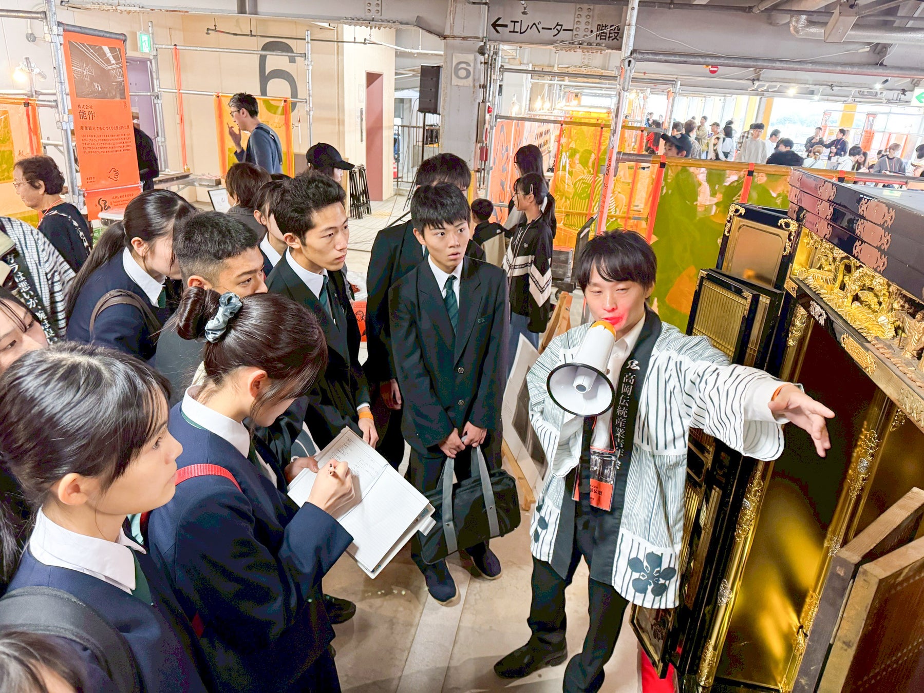 高岡伝統産業青年会(所在地:富山県高岡市)は、2025年10月18日・19日に開催された「クラフトフェア ツギノテ」会場内にて、高岡工芸高校の生徒12名を対象としたものづくり企業見学ツアーを実施しました。ツアーは高岡の伝統産業の特徴でもある分業制の工程を体感できる内容となっており、ツアー後のアンケートでは参加した生徒全員が、見学した企業について「就職先として魅力を感じた」と回答しました。本ツアーを通して、伝統産業や製造業の担い手候補となる若者に、高岡が誇るものづくりのリアルな魅力を体感してもらうことを目指して企画しました。