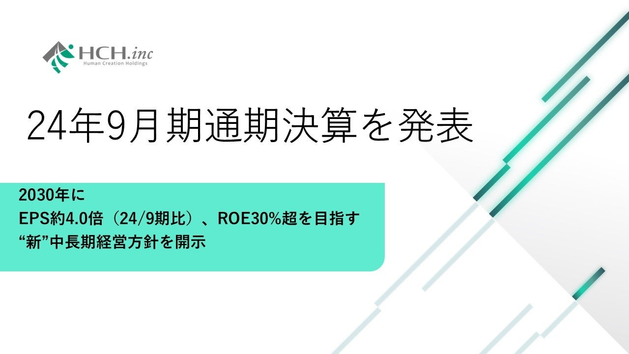 株式会社ヒューマンクリエイションホールディングス(本社:東京都千代田区、代表取締役社長 富永 邦昭、以下「当社」といいます。)は、本日2024年11月14日、2024年9月期 通期決算を発表致しました。