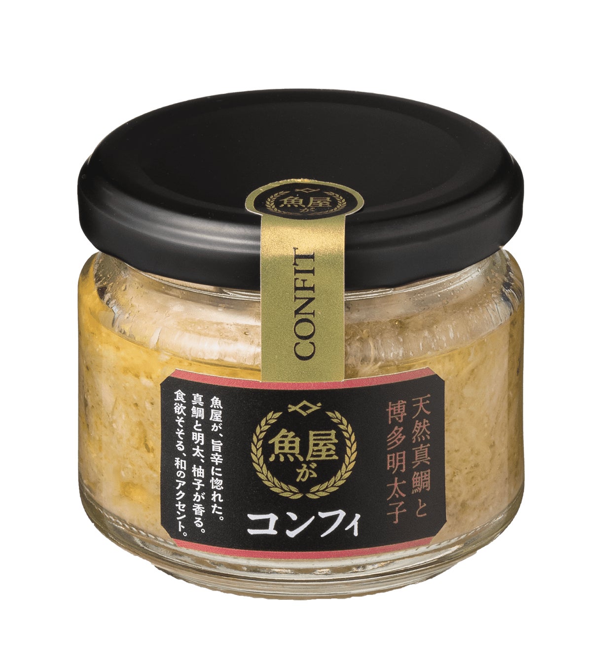 また当社では、冷凍食品にとどまらず、地域の水産資源・特産品の価値をより幅広い形で発信したいという想いから、常温品分野にも新たに挑戦しています。その取り組みの一環として、地域特産品である「有明海苔」を使用した瓶詰商品「魚屋がコンフィ 天然真鯛と有明海苔」、および博多明太子を使用した「魚屋がコンフィ 天然真鯛と博多明太子」を、2025年7月15日(火)に同時発売いたしました。