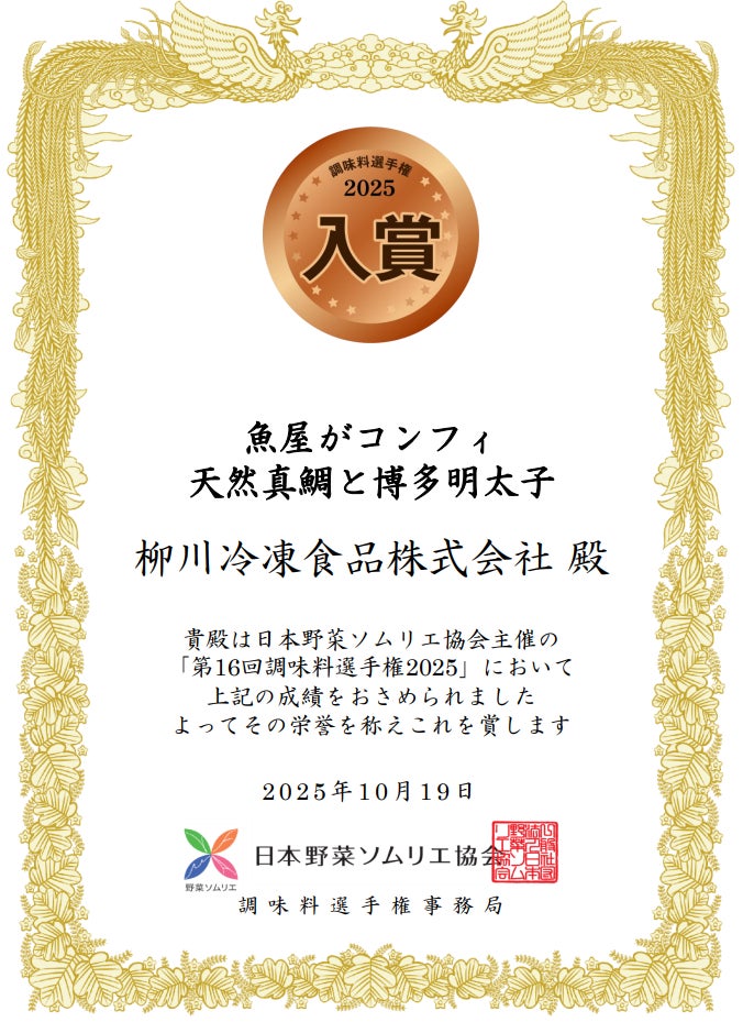 味づくりの完成度が評価され、調味料選手権にて入賞しました。
