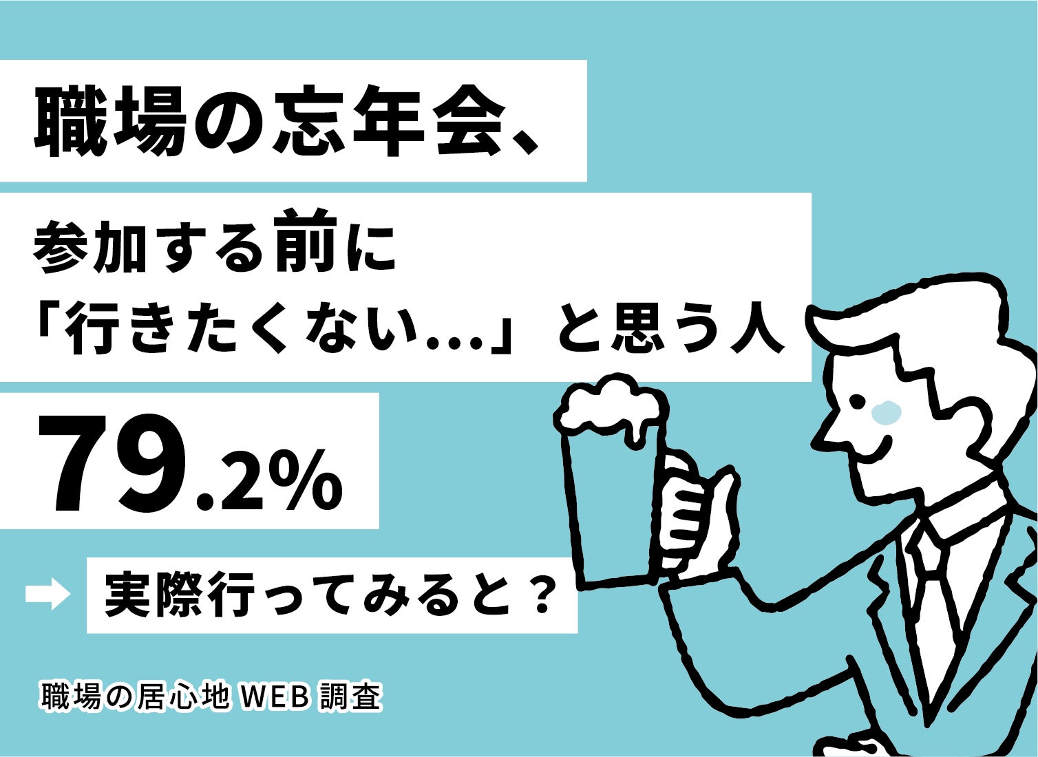 【職場の居心地WEB調査】職場の忘年会、参加前に「行きたくない」と思う人は79.2%