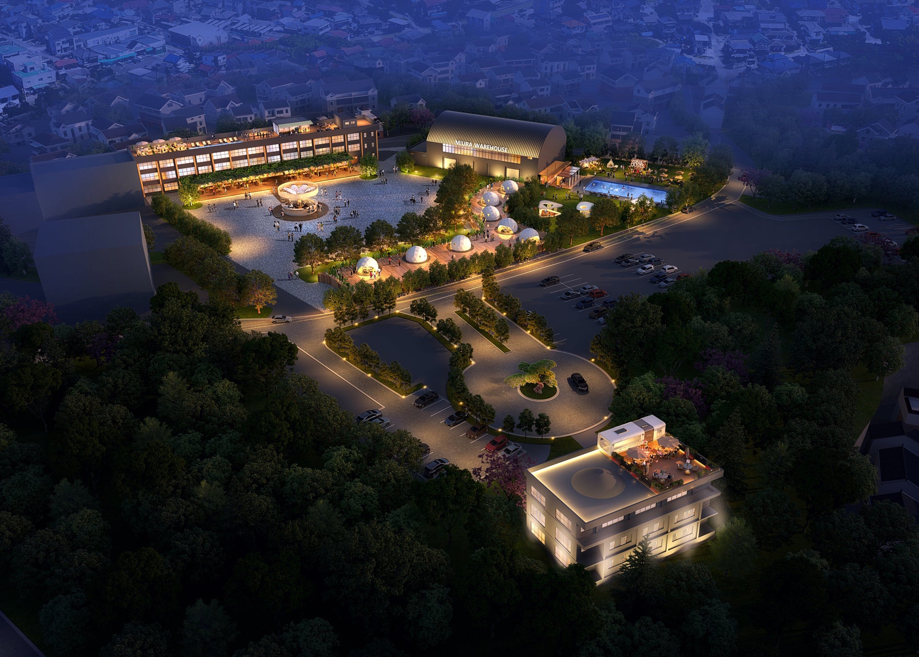 エリア:ホテル、サウナ、グランピングBBQ施設、イベント広場、ダイニング、バー、ギャラリー、アトリエ、ショップ、家具店など