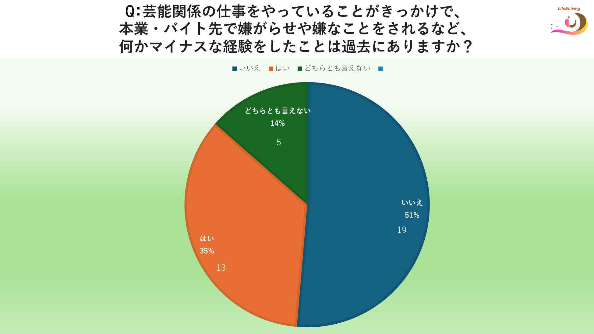 Q4:芸能関係の仕事をやっていることがきっかけで、本業・バイト先で嫌がらせや嫌なことをされるなど、何かマイナスな経験をしたことは過去にありますか?