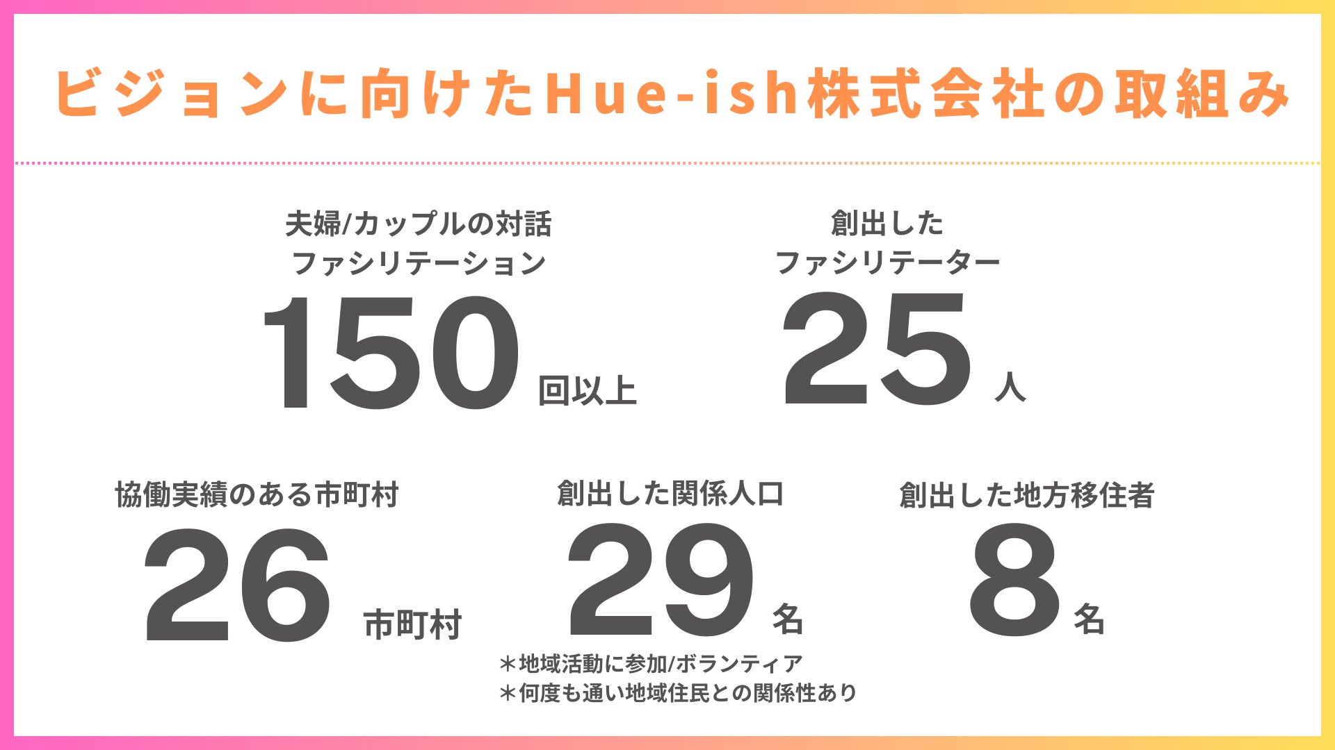 Hue-ish株式会社は、地方移住した子育て家族が安心して挑戦できるまちづくりを目指したコミュニティを全国で立ち上げます!