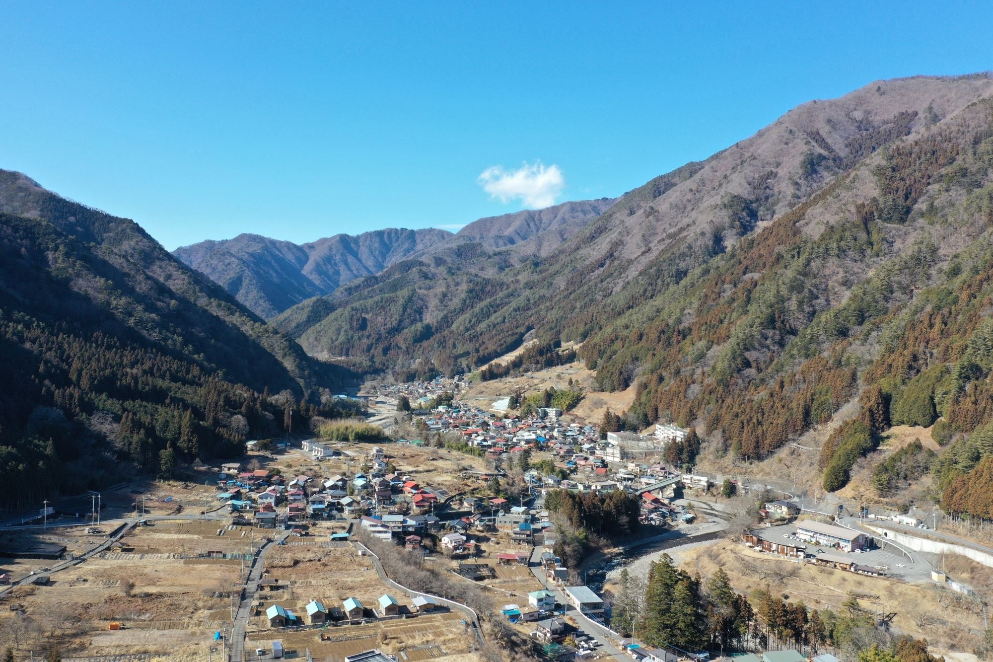 山梨県の北東部、東京都と埼玉県に隣接し、村全域が秩父多摩甲斐国立公園内に位置します。面積の97%を山林が占め、大部分が東京都の水源涵養林となっています。人口は508人(令和6年3月1日現在)と山梨県下で最も少なく、離島を除く関東圏でも最少。65歳以上の高齢人口比率は、40%を超えています。