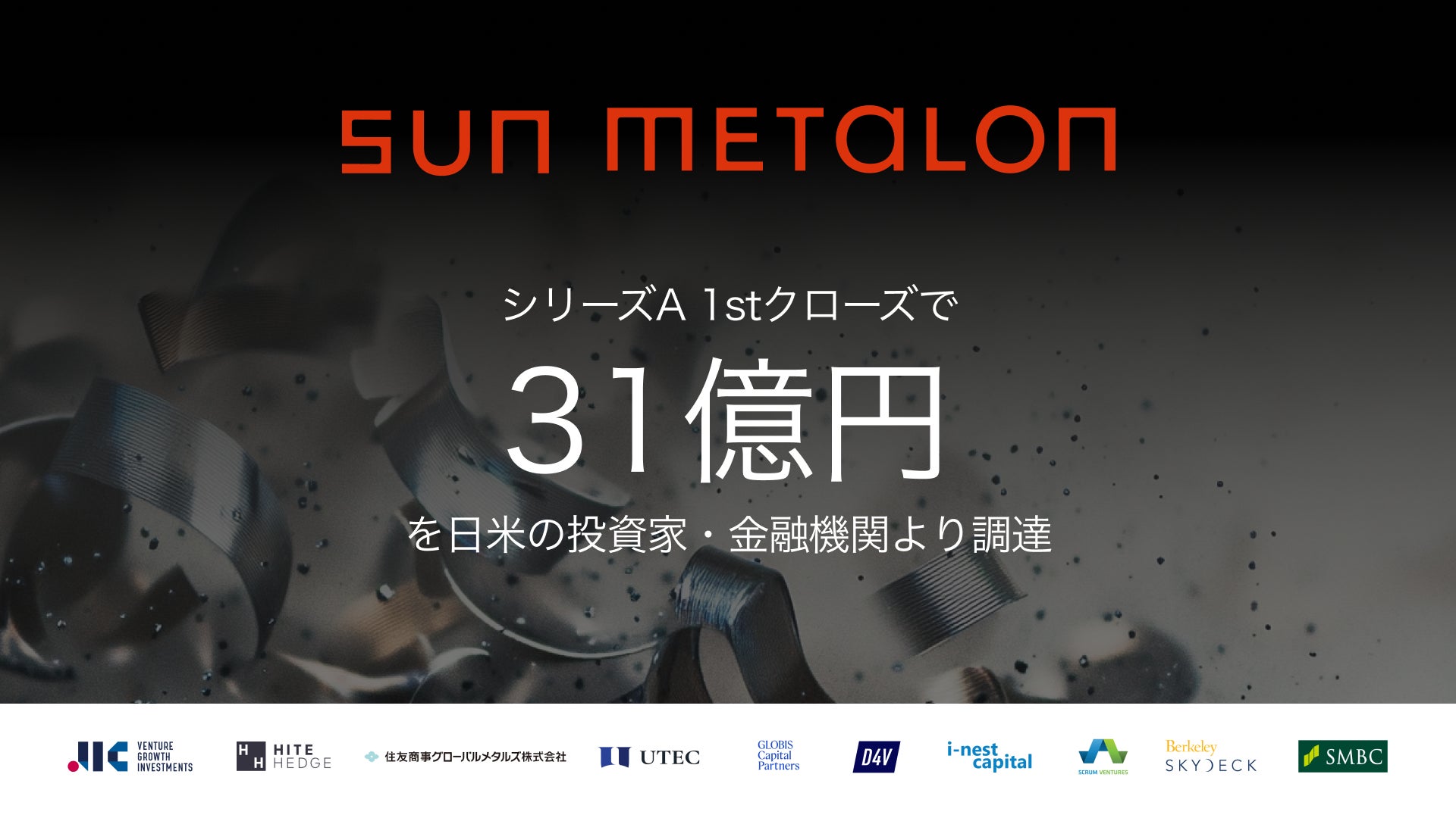 SUN METALON、シリーズA 1stクローズで総額31億円を日米の投資家・金融機関より調達