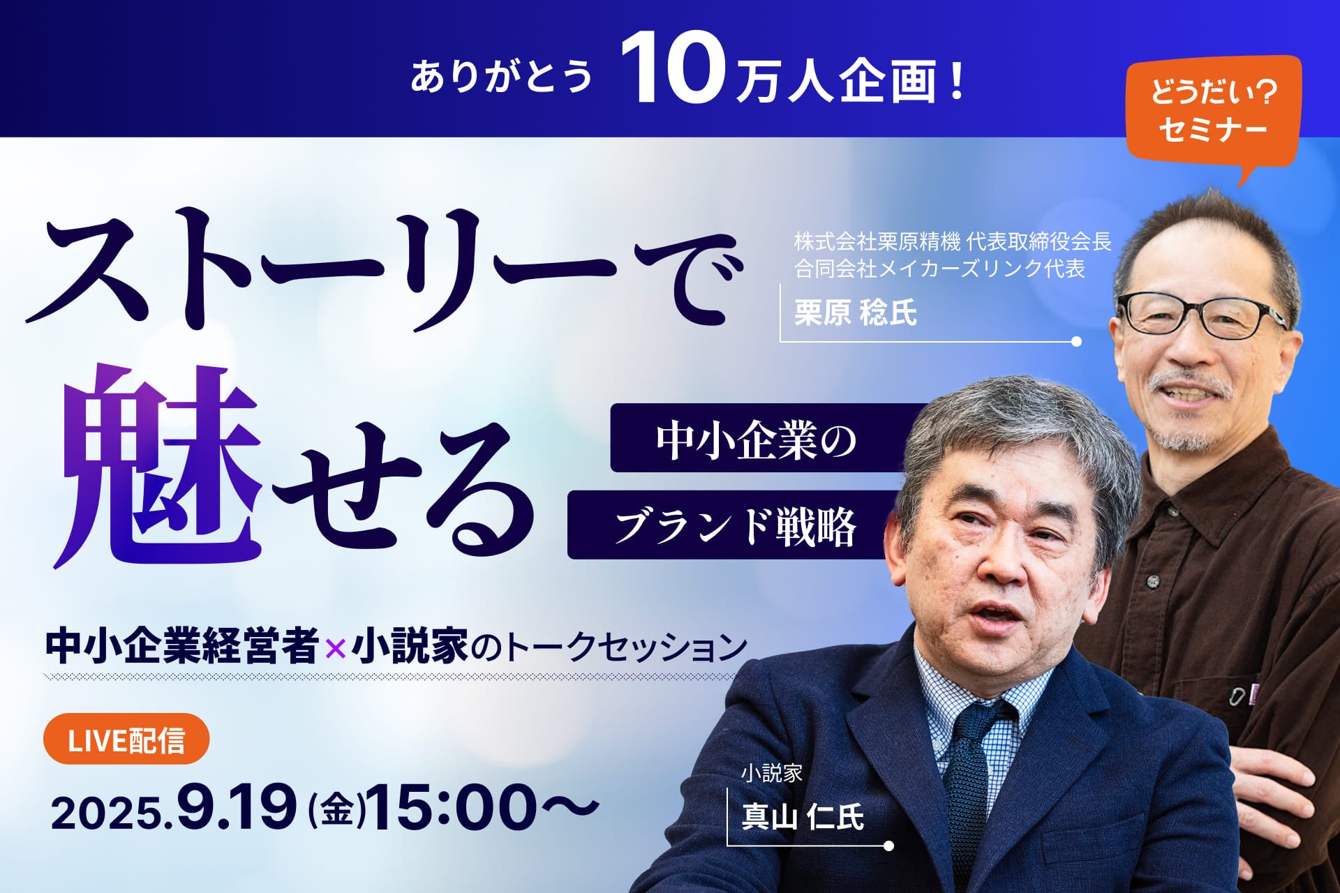 小説家・真山仁氏が語る、語り継がれる企業に共通するストーリーブランディングの視点と、栗原稔氏が支援してきたリアルな企業事例から、選ばれる企業になるヒントを探ります。