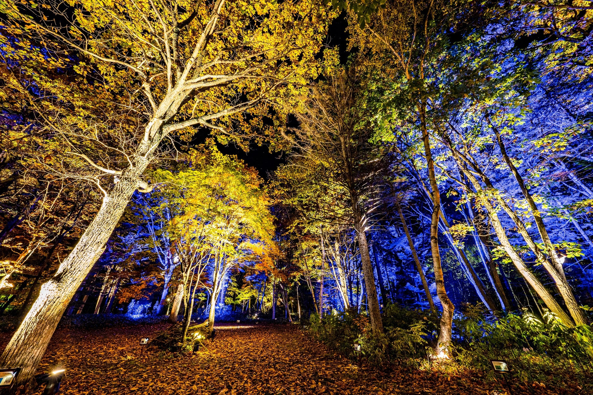 阿寒摩周国立公園は、屈斜路湖・摩周湖などの素晴らしい湖と共に、アカエゾマツの原生林やミズナラ、シラカンバなど豊かな森の広がるエリア。「川湯の森ナイトミュージアム」では、そういった手つかずの大自然を身近に感じてもらうため、「美しい光の演出」によって森の魅力を伝える試みを行っています。