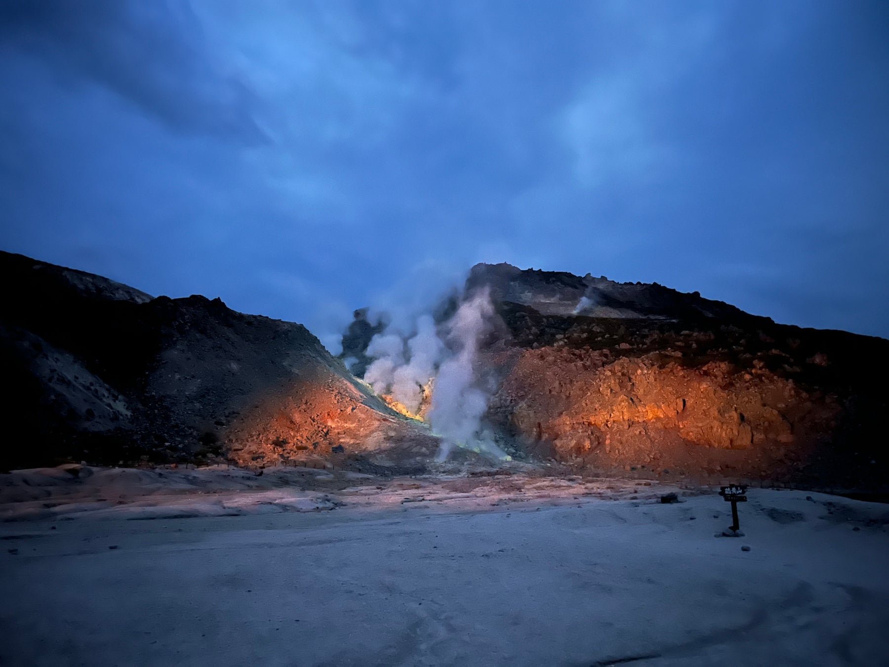 普段は昼にしか見れない硫黄山を、特別な光の演出で、噴気孔から立ち上る煙と大地の創り出す絶景と共に楽しむ日本初の活火山ライトアッププログラム。また同時に「闇と星空」も感じることができる、夜のフィールドミュージアムとなっています。