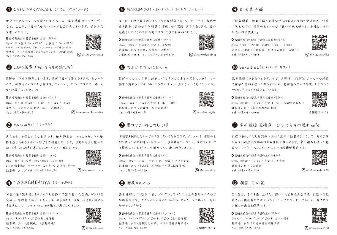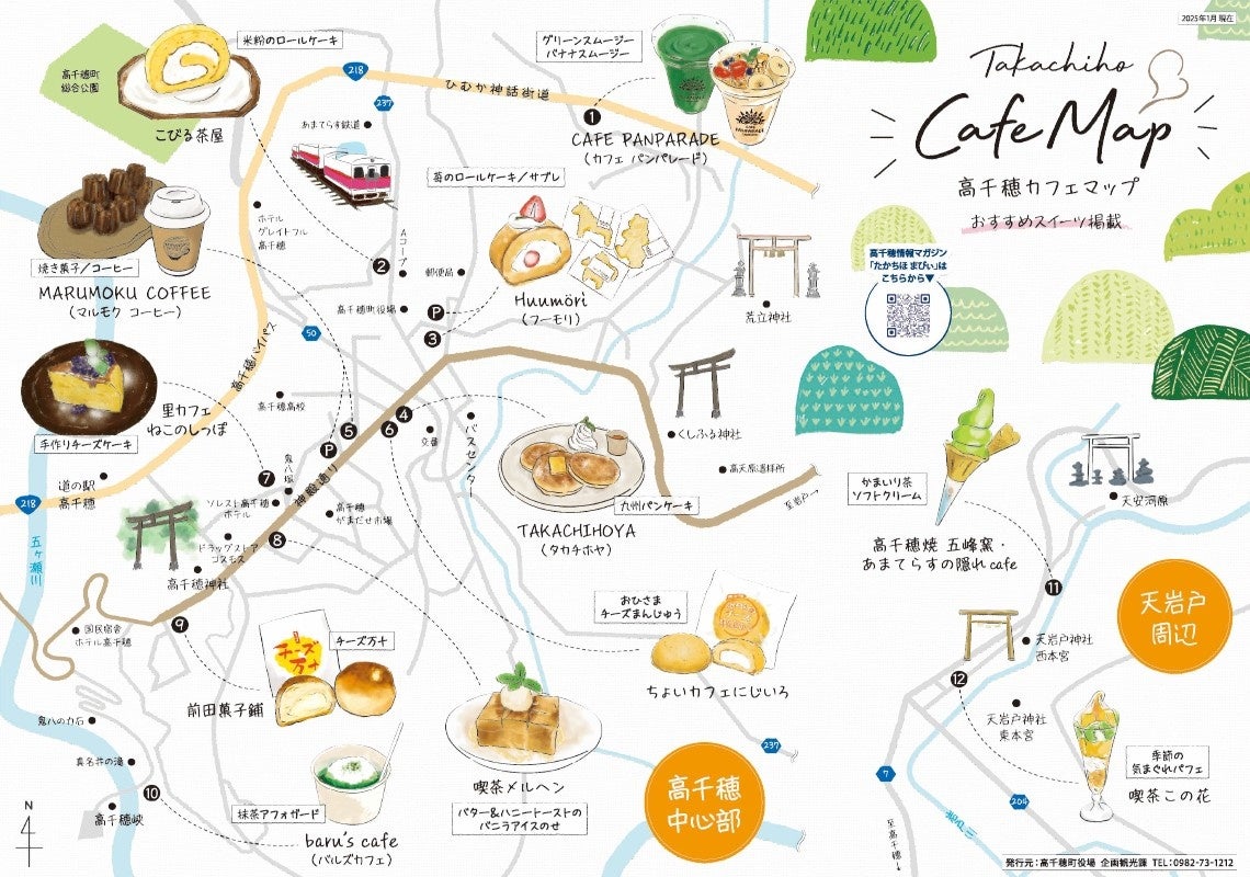 宮崎県高千穂町100%出資の観光地域づくり法人である株式会社高千穂まちづくり公社(代表:甲斐 宗之(高千穂町長))は、観光で大人気の「高千穂中心部」と「天岩戸周辺」の2つのエリアにあるカフェ・菓子店をまとめた散策マップをリリースします。(4月予定)