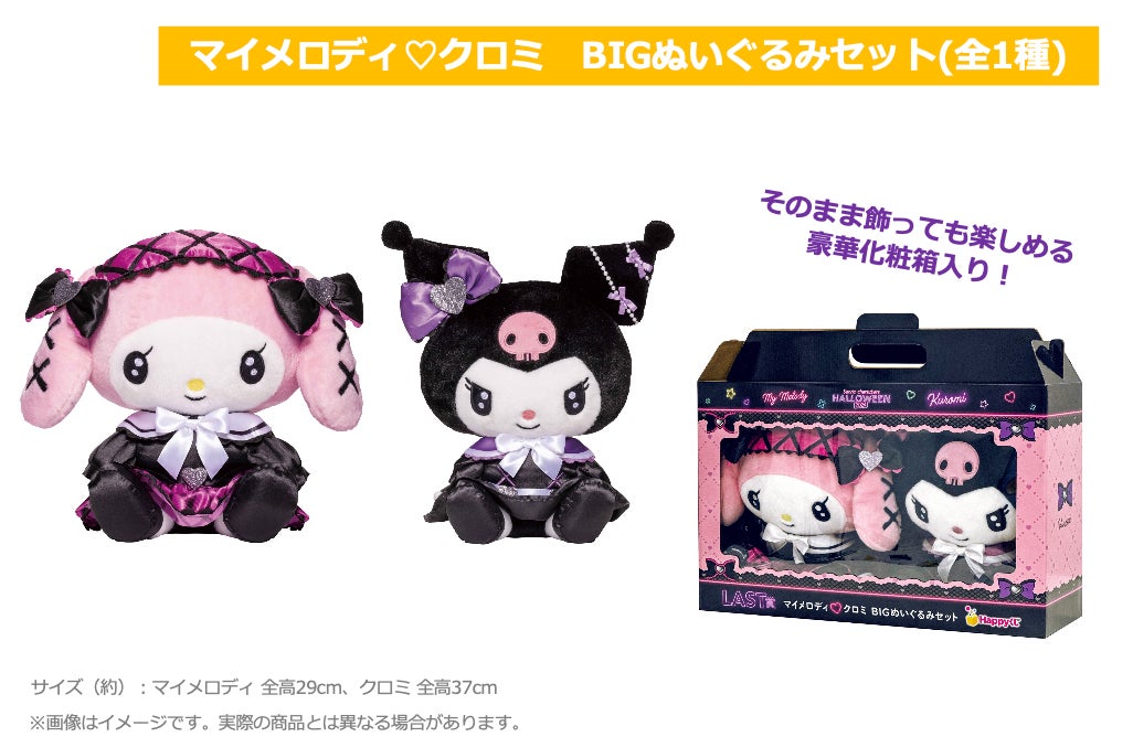 最後のくじを引いた方が手にすることができるLAST賞には、お揃いの衣装を着た「マイメロディ♡クロミBIGぬいぐるみセット」をご用意しました。