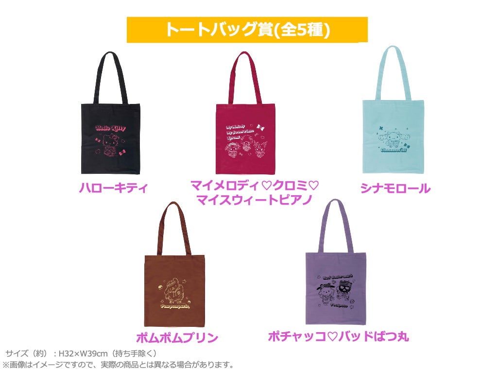 今回のくじのイチオシは「フィギュア賞(全10種)」。全キャラクターにメタリック塗装を施すことで、ホラーテイストなハロウィンの不気味さを表現しています。その他、病みかわいい「ぬいぐるみチャーム賞(全5種)」や、お出かけに最適なサイズの「トートバッグ賞(全5種)」、小物などの収納に便利な「フラットポーチ賞(全4種)」、推し活に使える「アクリルキーホルダー賞(全6種)」など、日常生活に大活躍のラインナップも必見です!