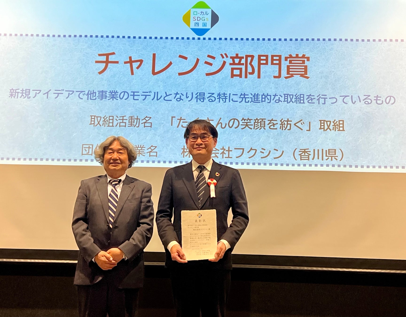 ㈱フクシンは、第3回ローカルSDGs四国表彰で「チャレンジ部門賞」を受賞しました。