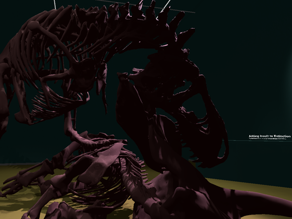 それぞれ、1.ティラノサウルスがトリケラトプスを捕食する瞬間が化石化した標本、2.アメリカ大陸最初の入植者ジェームズタウンの埋葬出土標本、3.紀元前2世紀周辺の青銅器標本を展示しています。英語と日本語の多言語対応をしており、言語の壁もクリアしています。