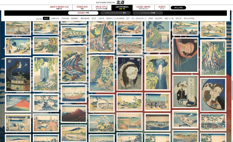 北斎作品の1,383点のデジタルデータを、スライドショーとして再生できます。