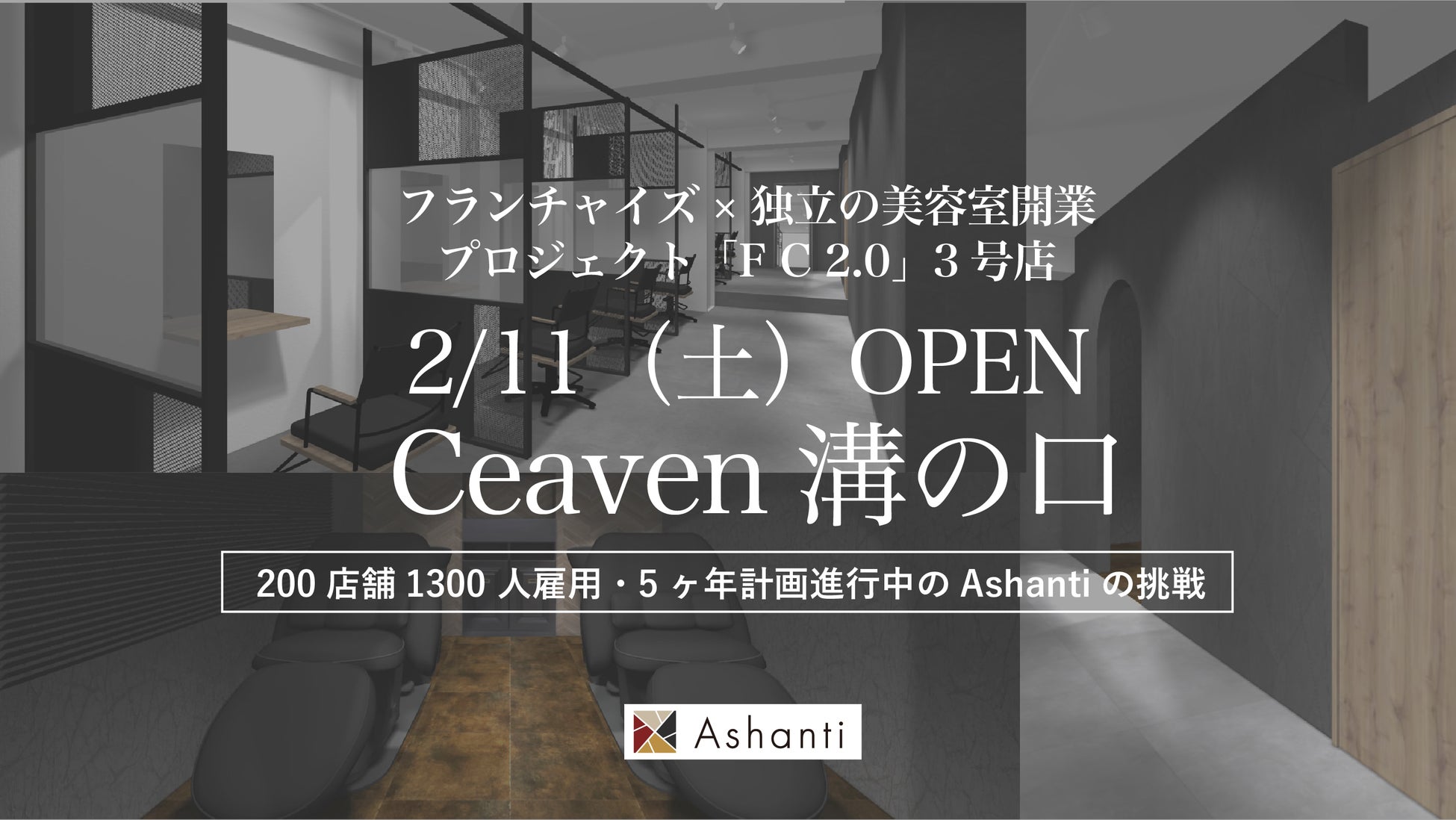 200店舗計画進行中のAshantiが手掛ける新様式フランチャイズ「FC2.0」プロジェクト2/11(土)美容室Ceaven(セヴン)が溝の口にオープン