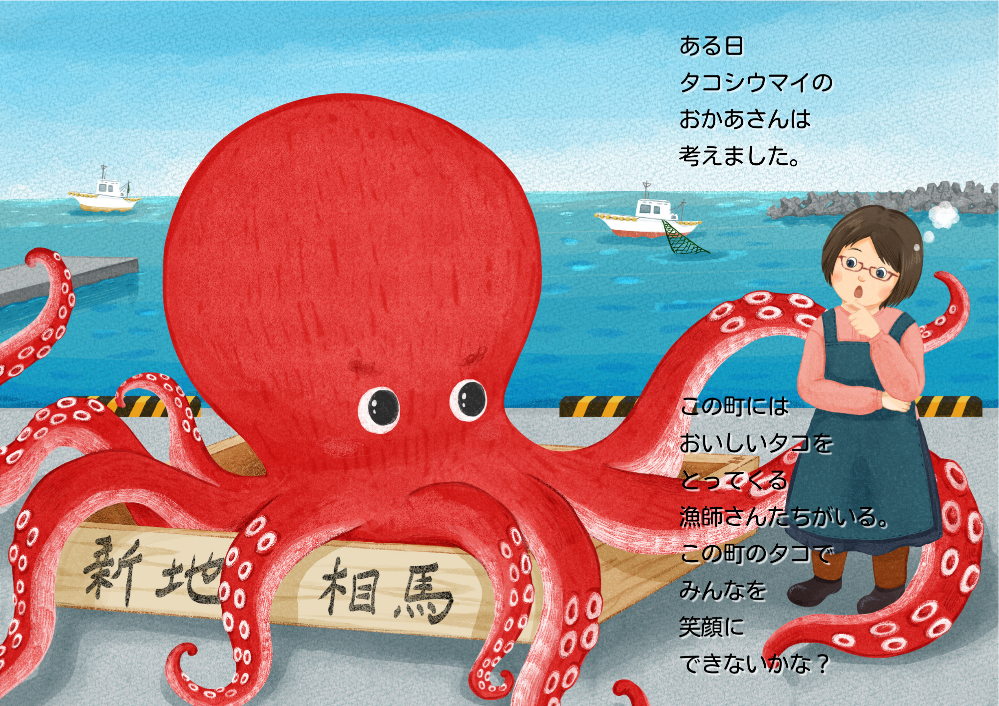 本作品は、震災後の福島の海と人の歩み、そして地域の希望を象徴する食として生まれた「タコシウマイ」の物語を、子どもから大人までわかりやすく伝えることを目的としています。