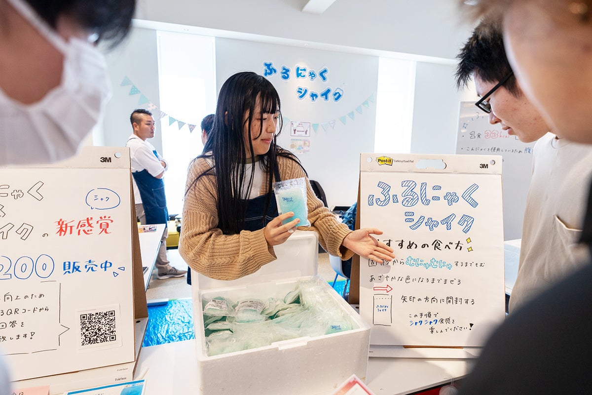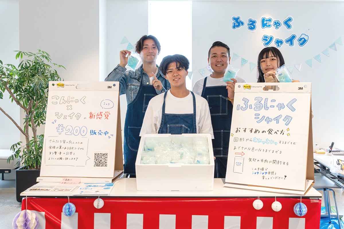 学生たちのアイデアが遂に商品化!桃山学院大学ビジネスデザイン学部の「BD博」にて、学生たちと共創した、こんにゃくを活用した低カロリーなフローズンシェイク「ふるにゃくシャイク」が204個完売。