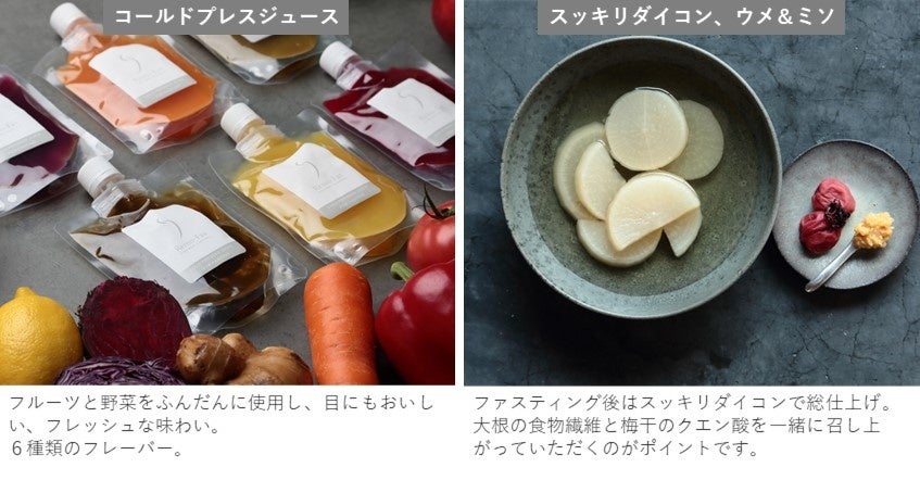ミシュラン店出身の料理人による準備食・復食に、ファスティング食は果物野菜を贅沢に使ったコールドプレスジュースで美味しさを追求。