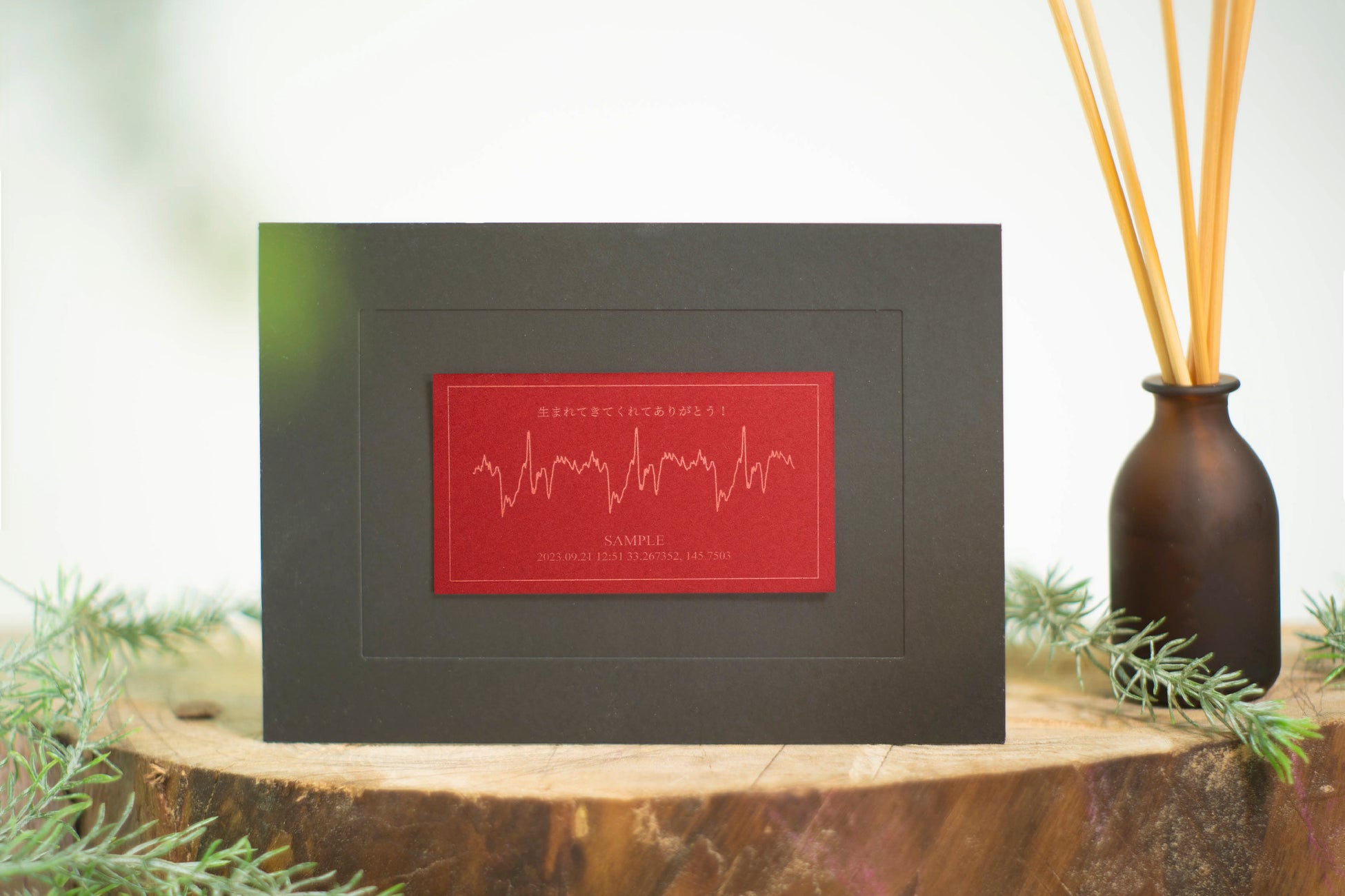 「TOKIMEKI CARD」は、赤ちゃんや子供の誕生日、記念日など、目には見えない一瞬の脈拍を目に見える形で残すためのものです。