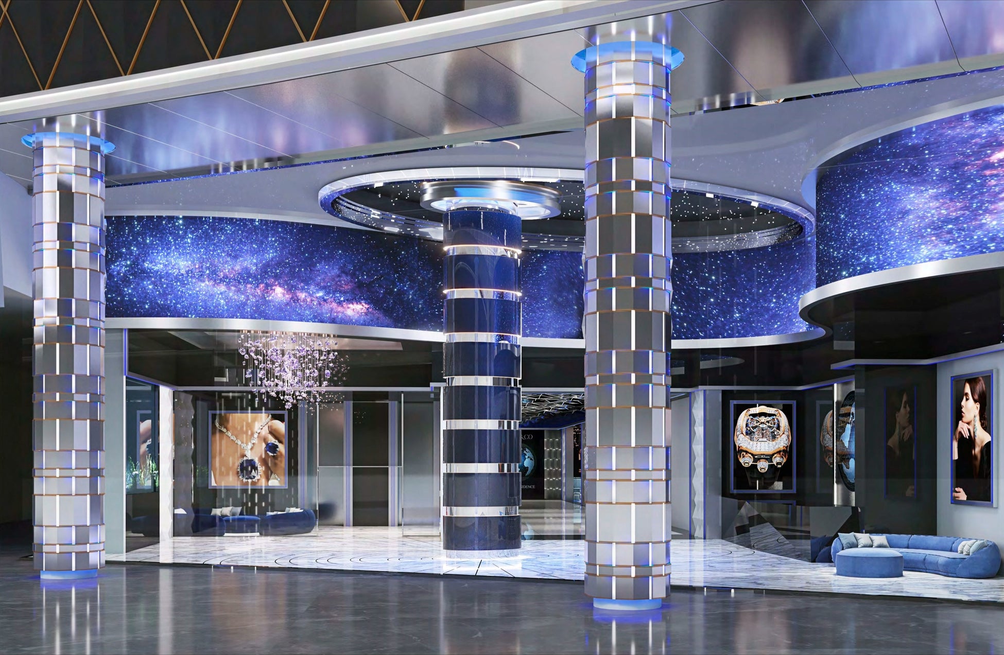 特別にデザインされた調度品の数々は、ジェイコブ&コーの時計製造と職人技の様式化された要素を特徴としています。