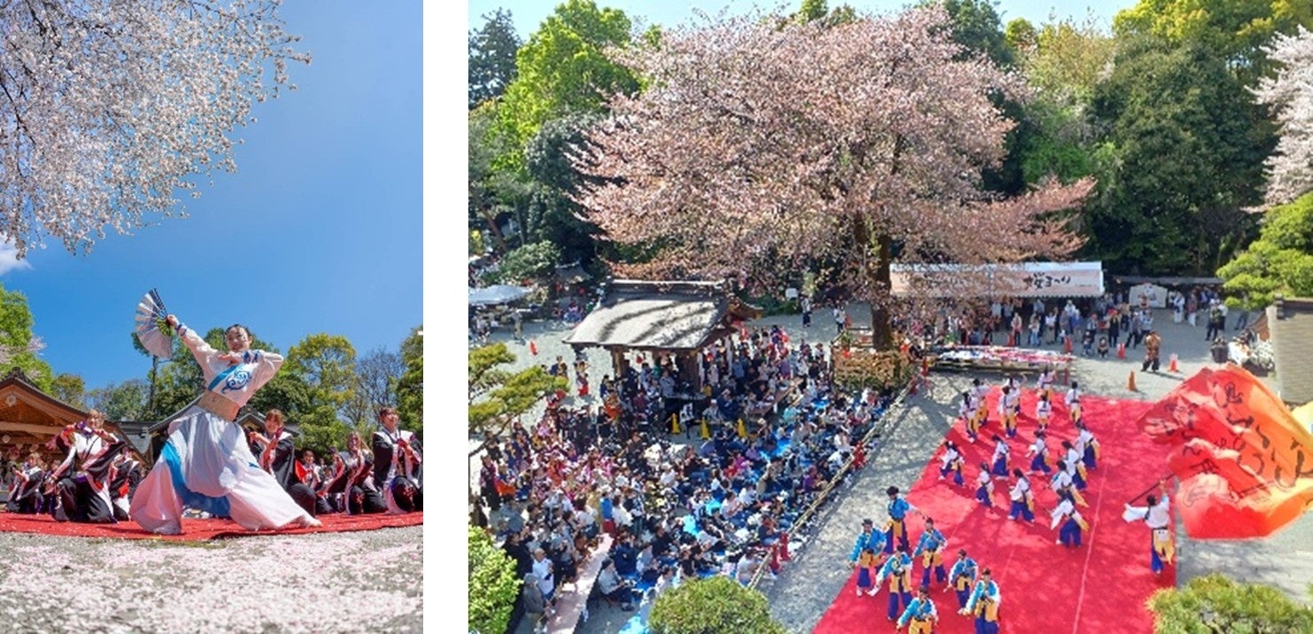 さらに、4月11日(土)、12日(日)には、境内の満開の桜が舞い散る中でよさこいを奉納する「第4回よさこいご縁まつり」が開催されます。50チーム以上1000名以上の踊り子が県内外より集まり、本格的なよさこい奉納のコンテストを観覧できる毎年恒例の人気行事です。