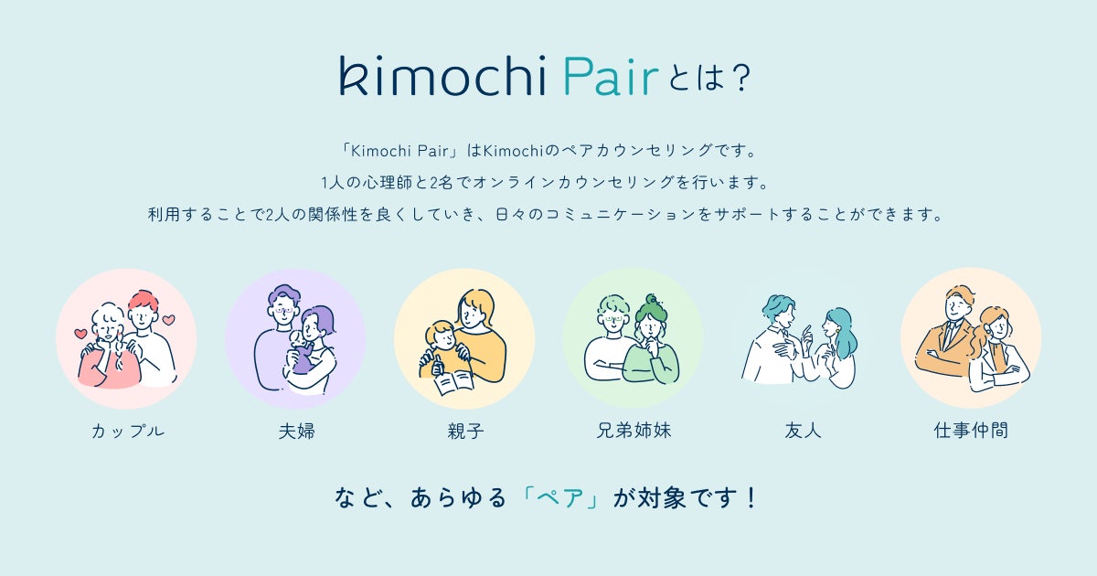 Kimochi Pairは、パートナーや家族との関係をより良くしたい方々に向けた、新しいカウンセリングの形です。今後も、より多くの方が気軽にメンタルケアを受けられるよう、サービスを充実させてまいります。