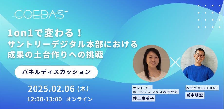 株式会社COEDAS(本社:東京都渋谷区、代表取締役:大塚純、以下COEDAS)の提供する、「1on1スキルアッププログラム」は、飲料メーカーとして国内トップのサントリーホールディングス株式会社(本社:大阪市北区、以下サントリー)デジタル本部への導入を開始しました。