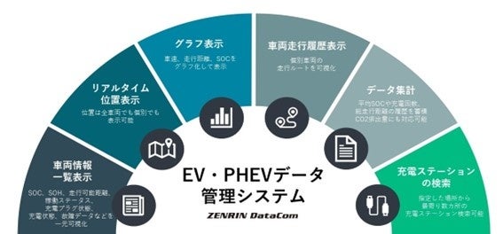 これらの課題解決をめざし、ゼンリンデータコムとAMANEでは、EV・PHEVの車両データ管理システムe-mobilogを共同開発し、2023年10月にリリースしました。当システムは、車載端末を通じて収集したSOC(電池残量)やSOH(バッテリー劣化度)をはじめとした各種データを可視化し、効率的なEV運用をサポートするものです。
