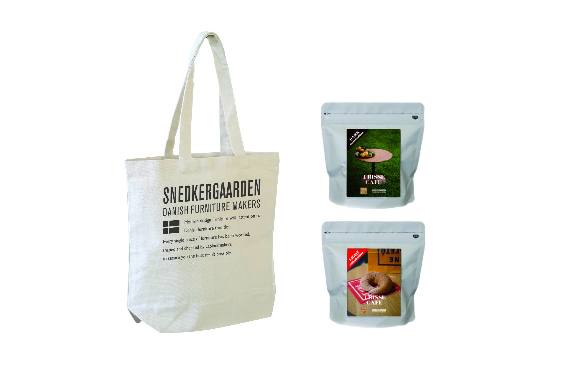 2種の味わいを楽しめるコラボブレンド珈琲と「Snedkergaarden トートバッグ(非売品)」のセットです。数量限定につき無くなり次第終了となります。