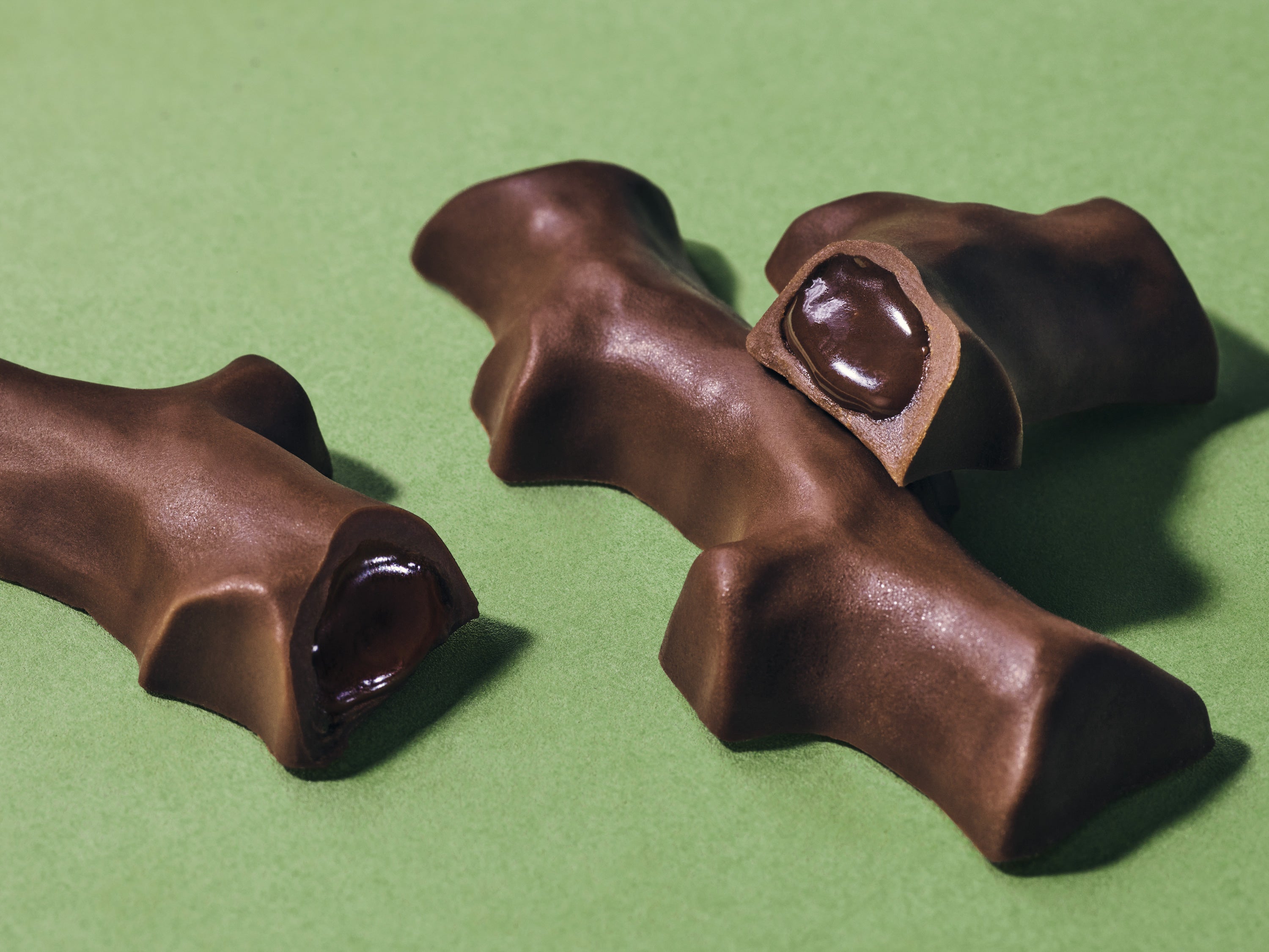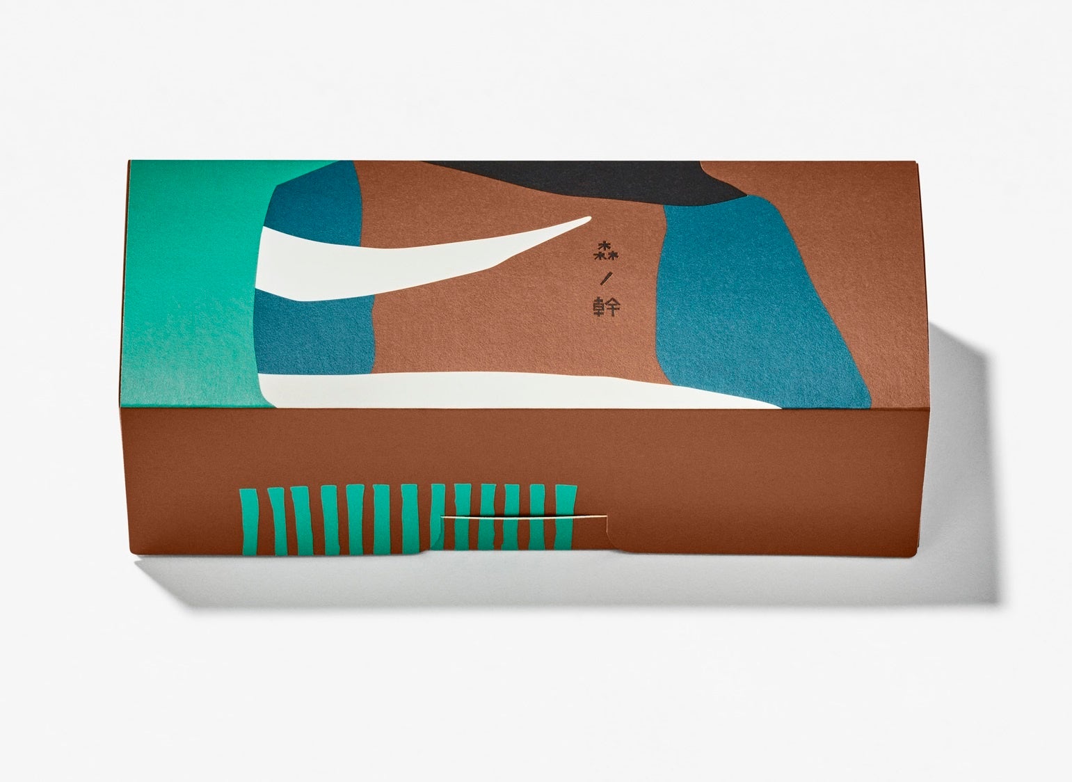 パッケージに美しく並ぶのは、版画家大谷一良さんの作品「森の見る夢」の木々をモチーフにかたどったボンボン。一般的な一口サイズのボンボンショコラとは異なり、1本1本存在感のある大きさです。北海道の大自然を目に浮かべながら、満足感あふれる味わいをお楽しみください。