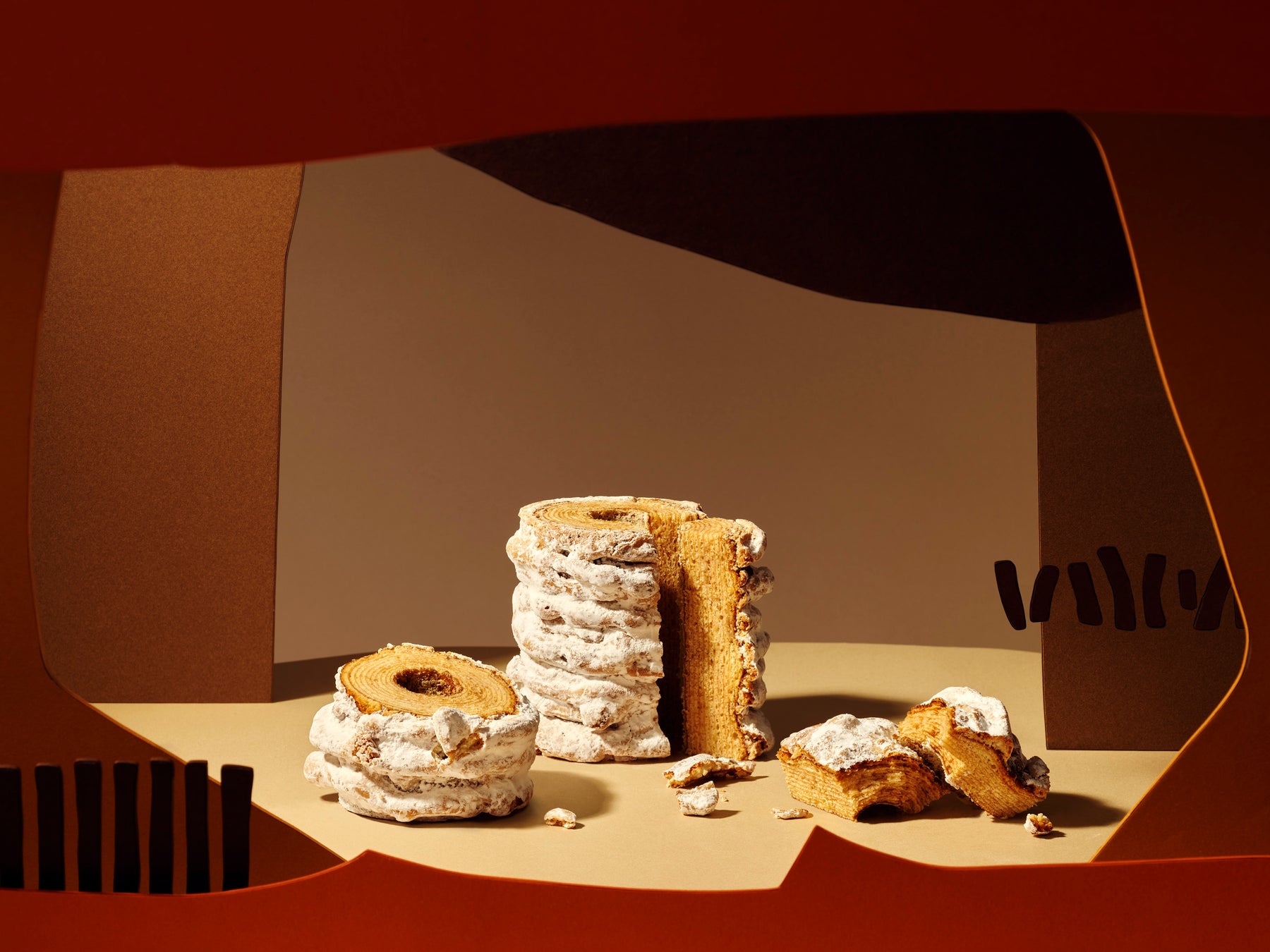 2種類のバターと、濃厚でコクのある冬の放牧牛乳を使い、一層一層丁寧にふんわりと焼き上げました。外側は繊細なマカロン生地をかけ二度焼きすることで、2つの食感を同時に楽しめるハイブリットスイーツです。