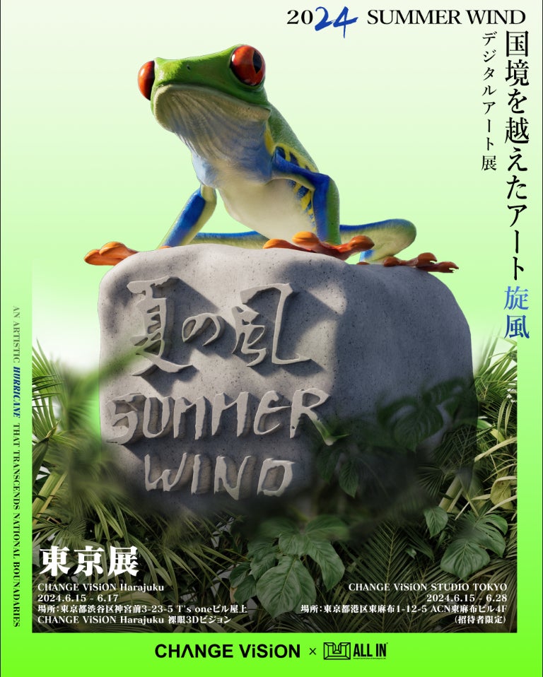 CHANGE ViSiON(東京)とALLIN AGENCY(上海)が共同主催する「2024 SUMMER WIND デジタルアート巡回展」が、今夏に東京展として盛大に開幕します。本プロジェクトは、世界各国のデジタルアーティストに対し、自身の作品の影響力を拡大し、創作の可能性を探るためのプラットフォームを提供することを目的としています。同時に、アーティストが志を同じくする仲間と出会う場としての活用や、アジア地域での潜在的なビジネスチャンスを広げる場となることも目指しています。