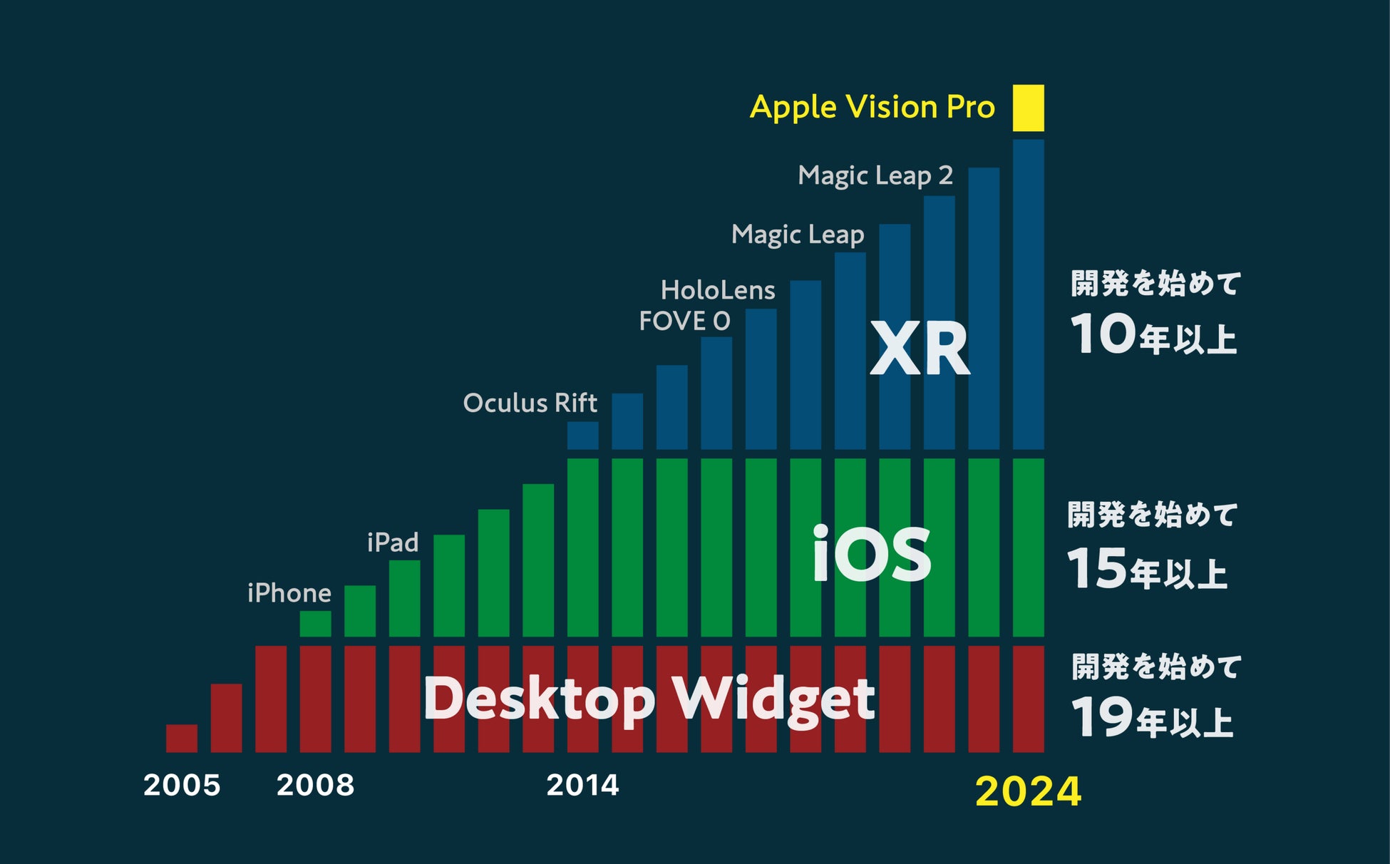 2005年から開発に取り組んでいるデスクトップウィジェット開発ノウハウは、空間コンピュータと
