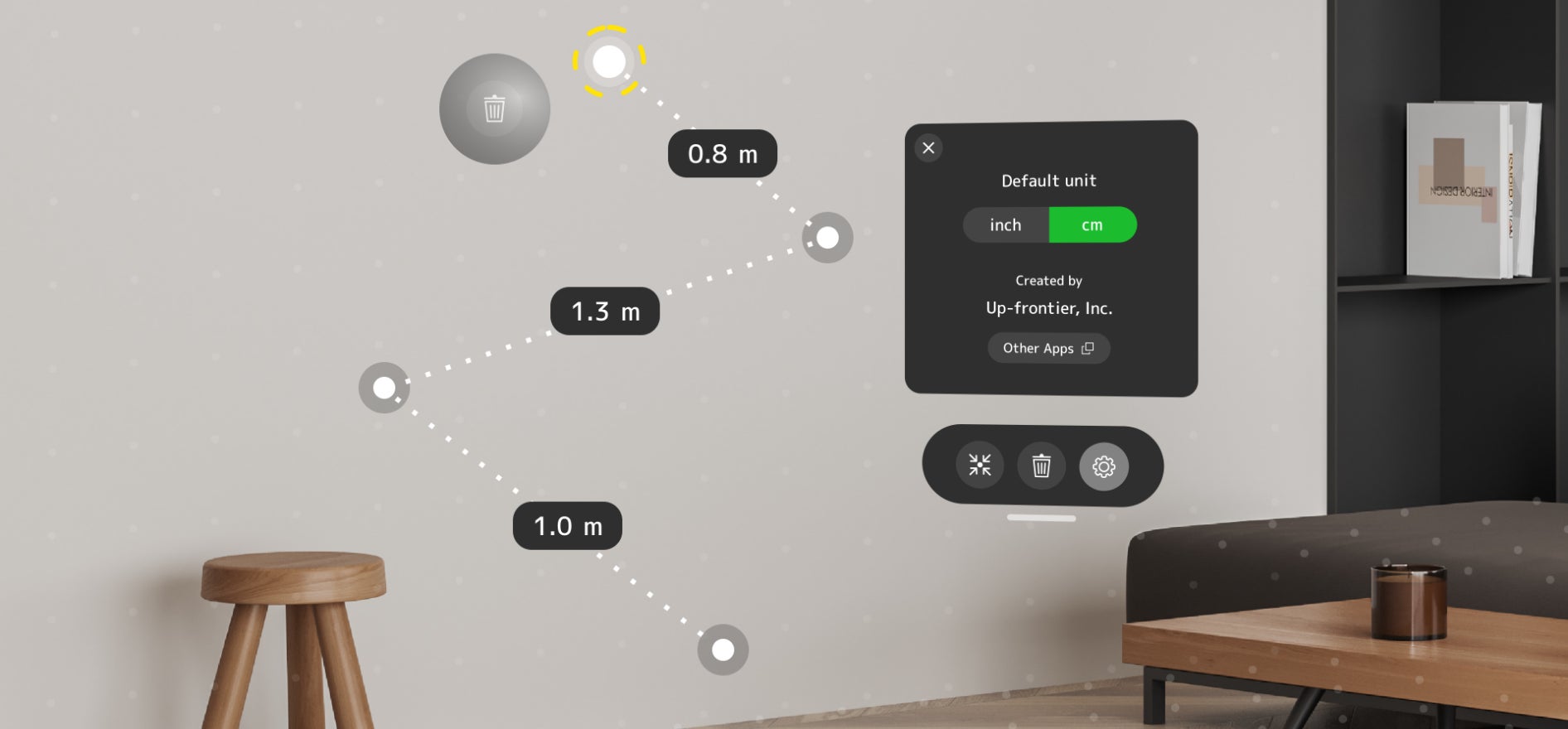 利用者に必要な情報を最適なインターフェイスで現実空間に配置する。AppleのアプリとXR、両方の豊富な開発経験がアップフロンティアの強みです。