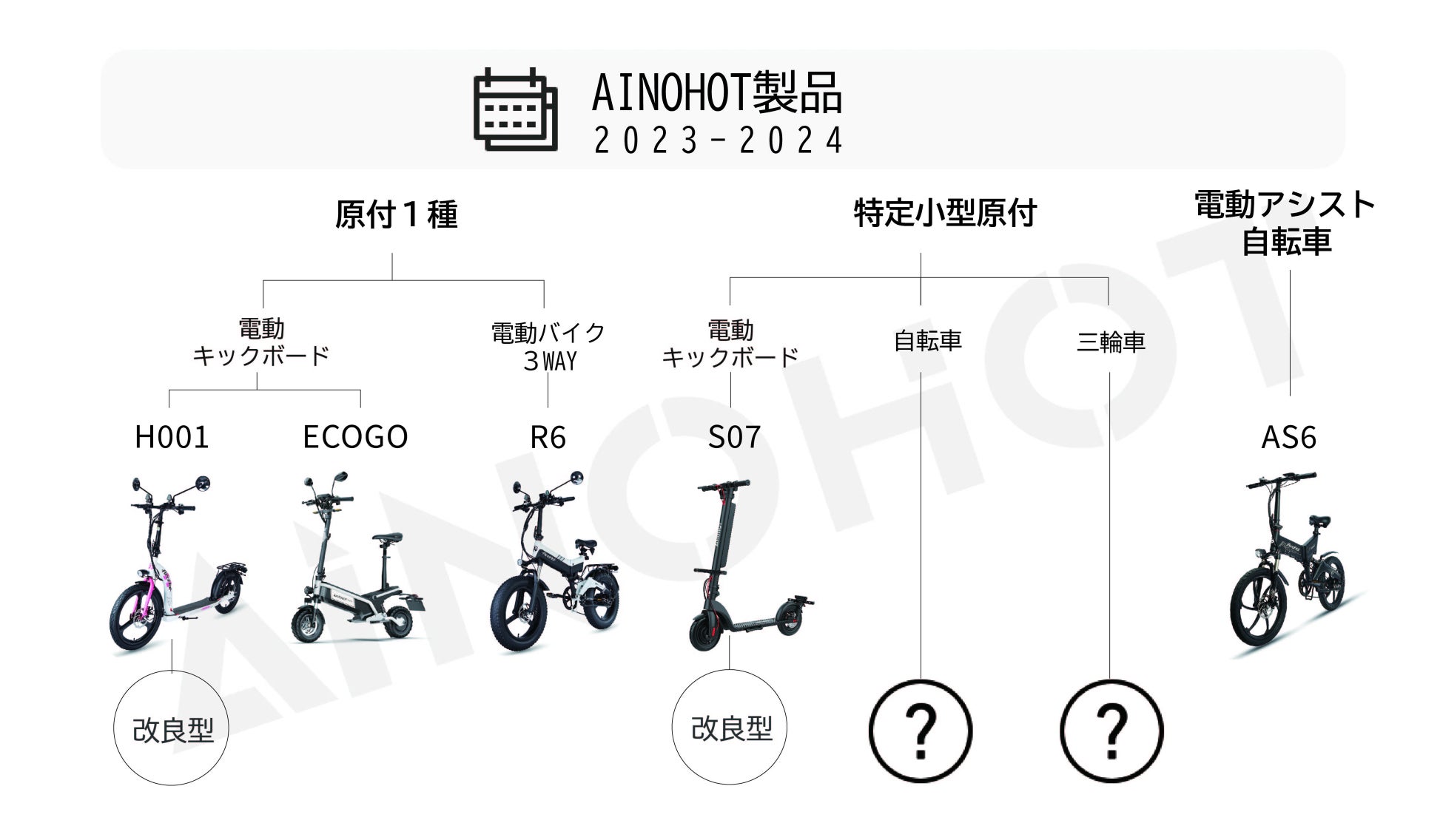 ~電動モビリティブランドAINOHOTは2024年に特定小型原付2台、従来型H001とS07の改良を準備しております~