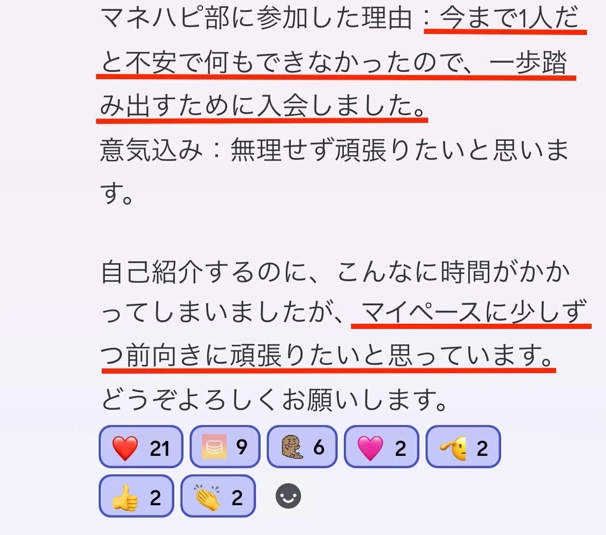 ◆今まで1人だと不安で何もできなかった…でも、マネハピ部にはたくさんの仲間がいます!